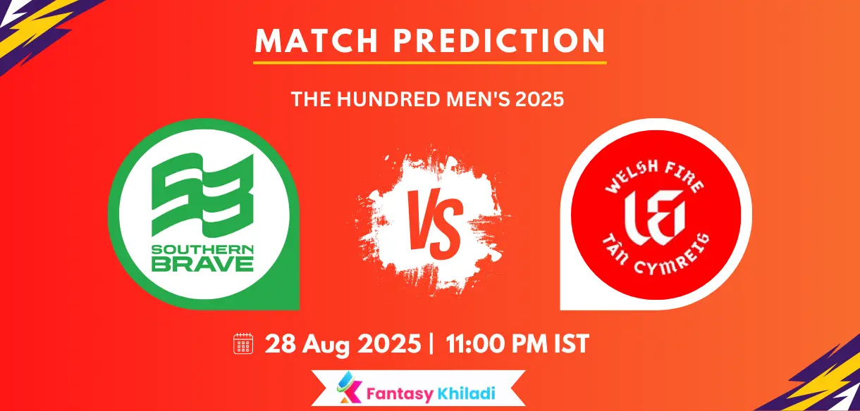 SOB vs WEF, Match Winner Prediction: The 32nd match of Hundred Men’s 2025 will see the Southern Brave clash with Welsh Fire, which will take place at The Rose Bowl, Southampton on 28 Aug, 11:00 PM IST.