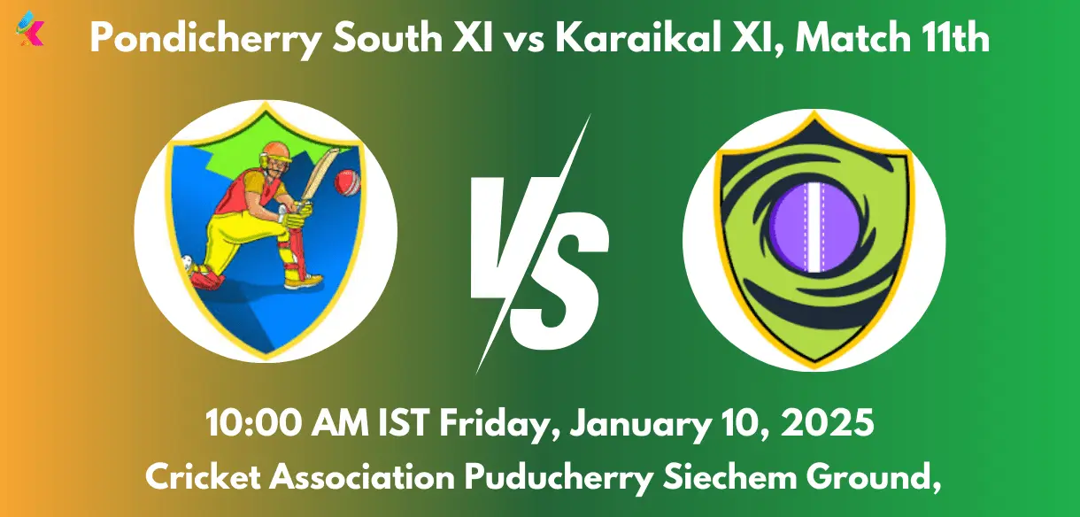 PSXI vs KXI Dream11 Team Prediction Today Match 11th Preview: The 10th match of the Pondicherry T10 2025 will witness an intense battle between Pondicherry South XI (PSXI) and Karaikal XI (KXI). The match is scheduled to be played on Friday, 10th January 2025 at 10:00 AM IST at the Cricket Association Puducherry Ground 4, Puducherry. With both teams having identical records in the tournament so far, this game promises to be a fierce contest for crucial points.