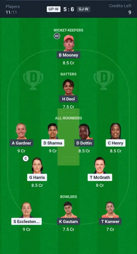 UPW W vs GG W Dream11 Prediction Grand League Team