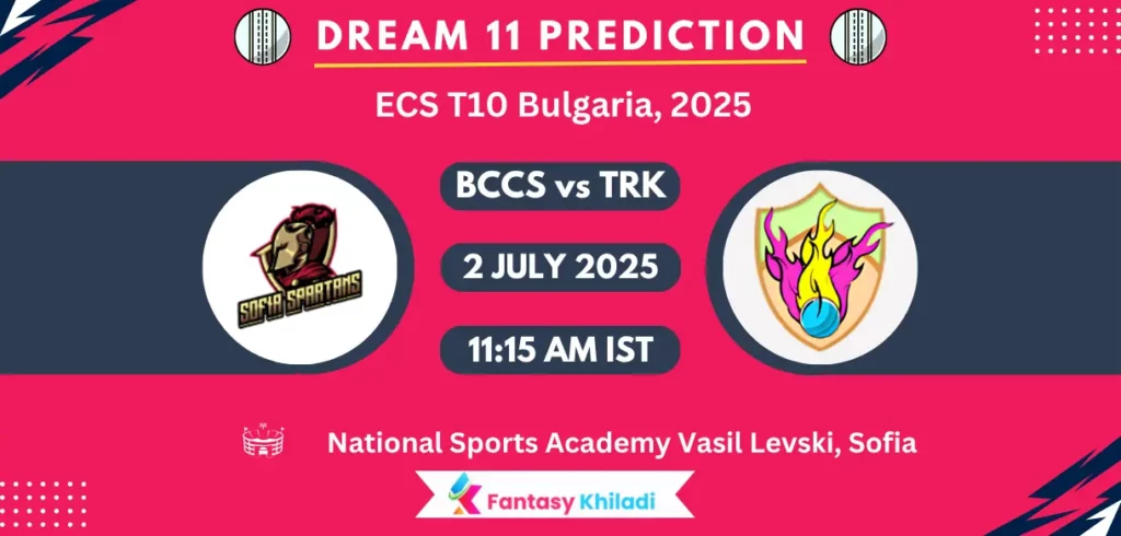 BCCS vs TRK Match 11th Dream11 Prediction Today Match Preview : BCC Spartans (BCCS) will take on MU Trakia (TRK) at National Sports Academy Vasil Levski, Sofia on July 2, starting at 11:15 AM IST. Get read for this ongoing tournament “ECS T10 Bulgaria, 2025” witnessing Match No. 11 with live streaming available on Fan Code.