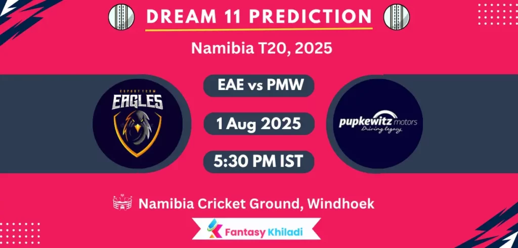 EAE vs PMW Match 2nd T20 Dream11 Prediction: Eavion Eagles are all set to clash with Pupkewitz Motors Wildcats at Namibia Cricket Ground, Windhoek on August 1, starting at 5:30 PM IST.