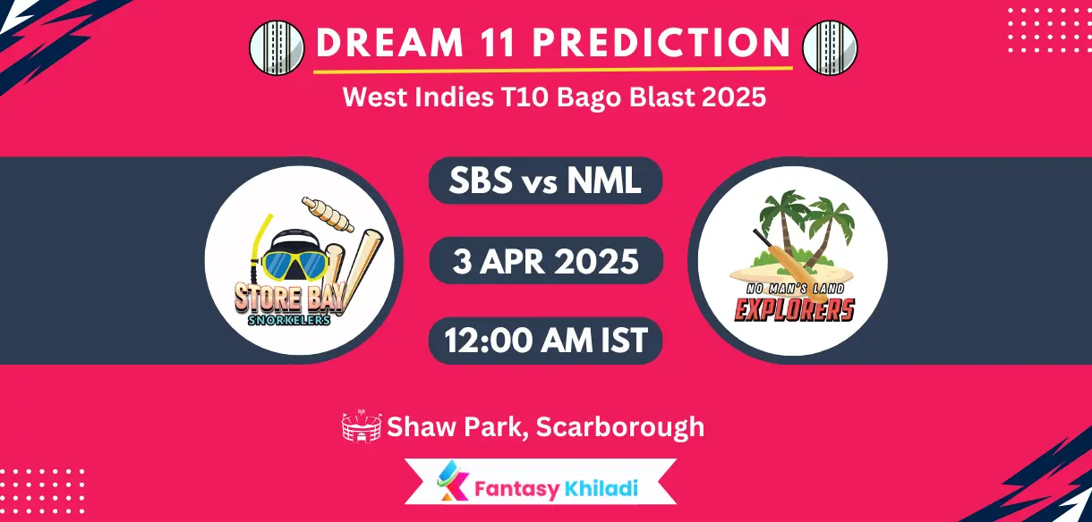 SBS vs NML Match Preview: Head-to-Head, Team Form & Key Stats: The bottom placed teams Store Bay Snorkelers and No Mans Land Explorers will go against each other in the West Indies T10 Bago Blast 2025. This match will be played at midnight as per Indian Standard Time. There is no chance of rain in this match and a full match is expected. The pitch is high scoring with an average first inning score of 114 runs. Store Bay Snorkelers are in fifth spot in the points table with two wins in seven matches.