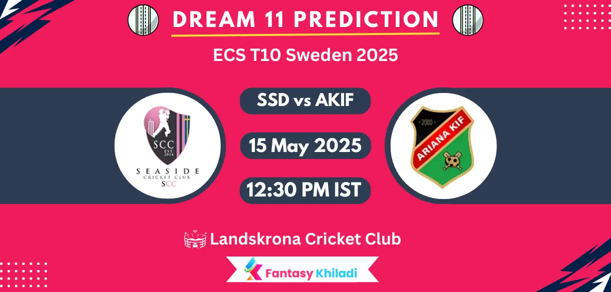 SSD vs AKIF Match 16th Dream11 Prediction Today Match Preview : The ongoing ECS T10 Sweden 2025 will see Seaside CC (SSD) fighting against Ariana AKIF (AKIF) at Landskrona Cricket Club on May 15. Starting at 12:30 PM IST, Match No. 16 will launch one more match of this tournament, available to watch on Fan Code App. Right after this match, SSD and AKIF will be up for one more clash on the same day at 4:30 PM IST in Match No. 18.